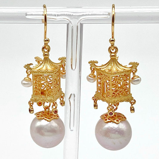 Oriental Ancient Temple Shape 3 Dimensional Silver 925 Earring
