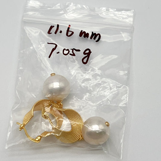 Retro Wind . Earrings of Edison Pearl in Silver 925. Round Bag