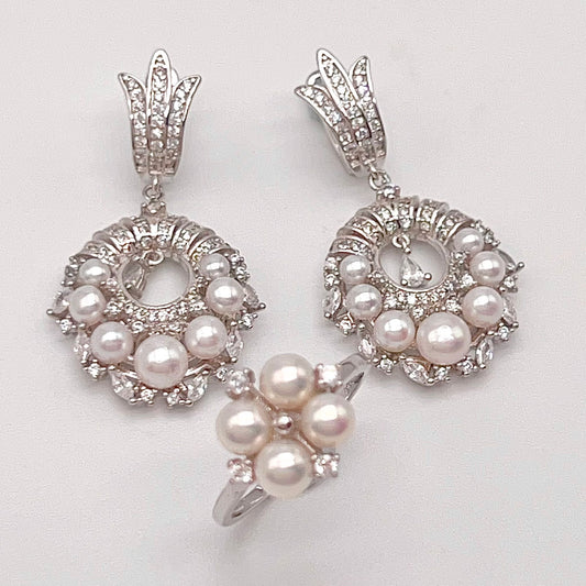 Antique Impression. Pearl Earring & Ring Set in Silver 925