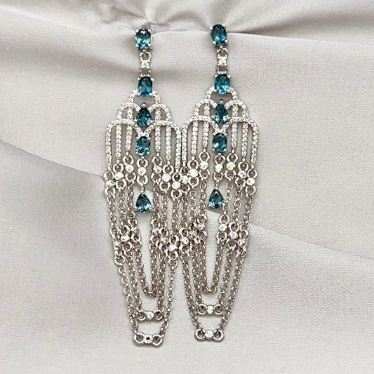 Art Deco Style Topaz and Silver Chain Dangle Earrings
