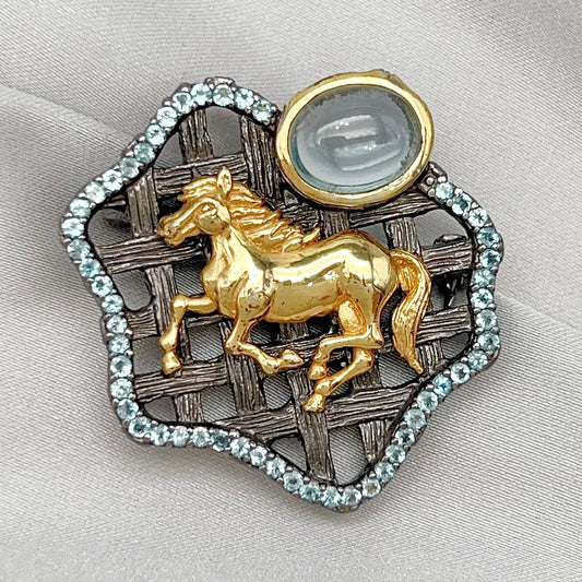 Golden Horse Blue Topaz Statement Pendant