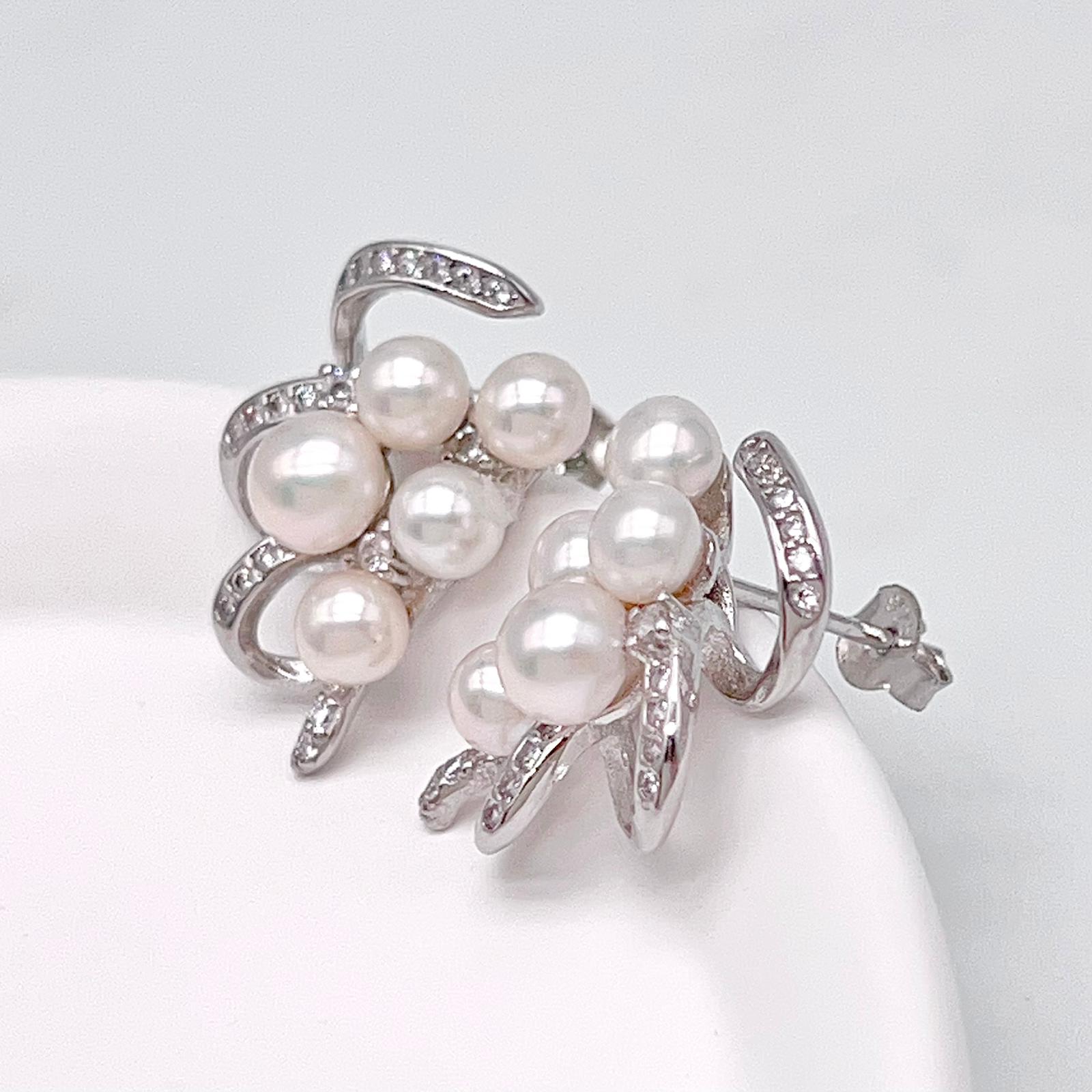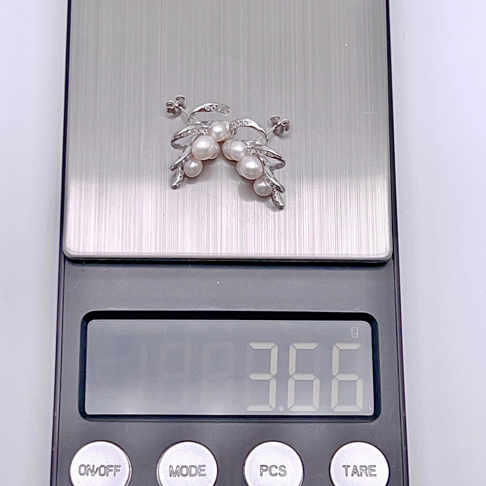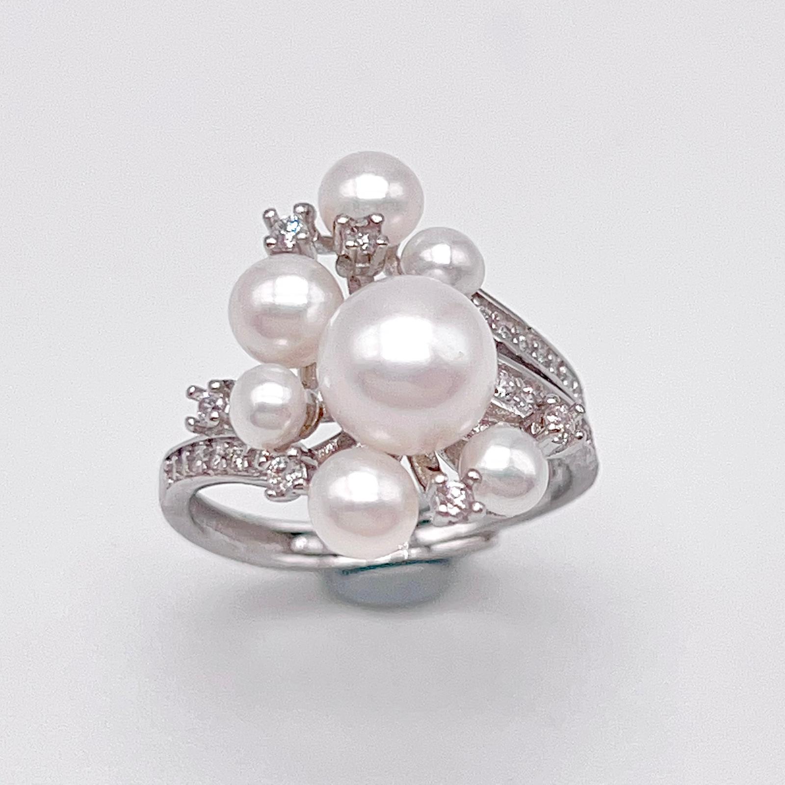 Antique Impression. Multi-pearl Ring and Earring Set in Silver 925. Ribbon & Snowball