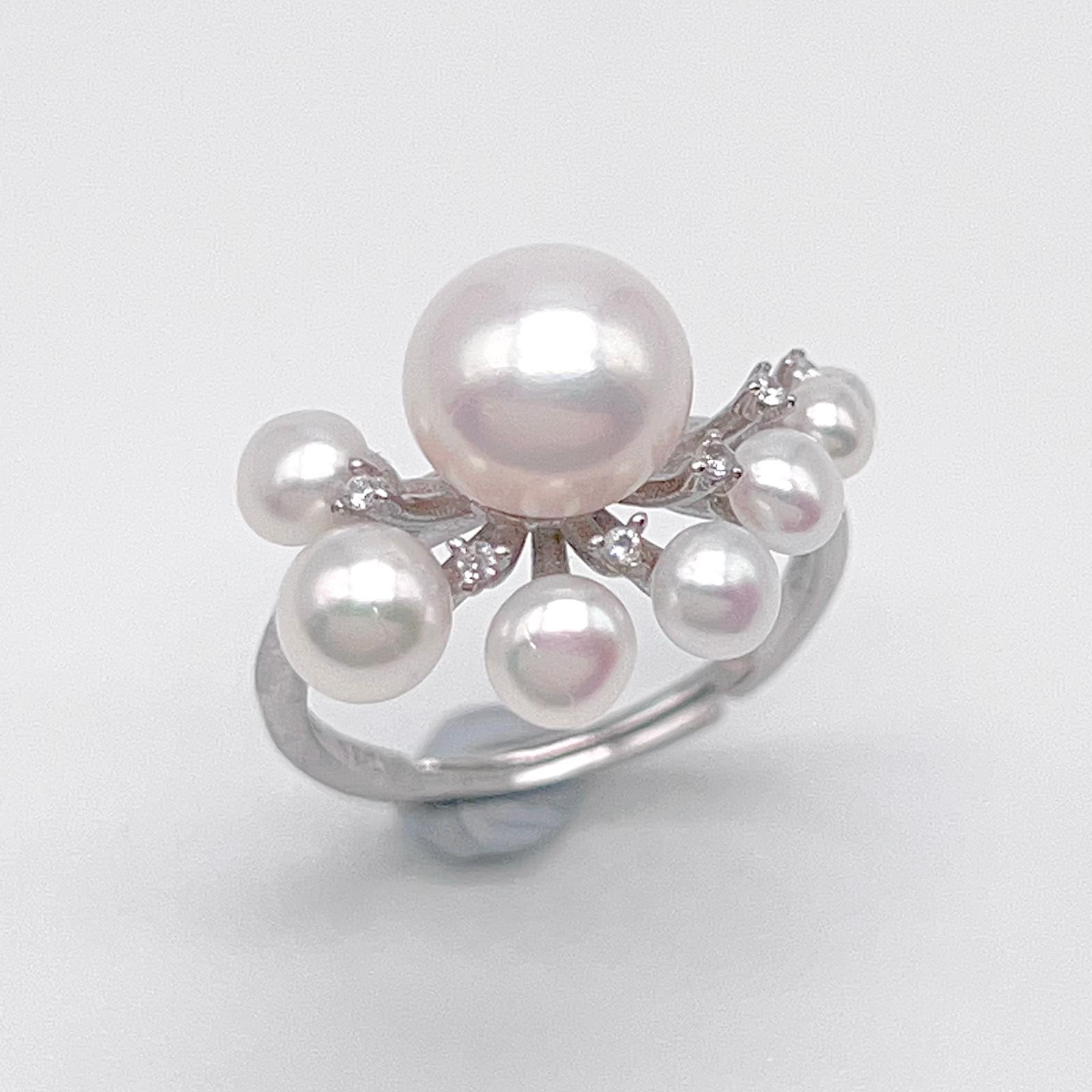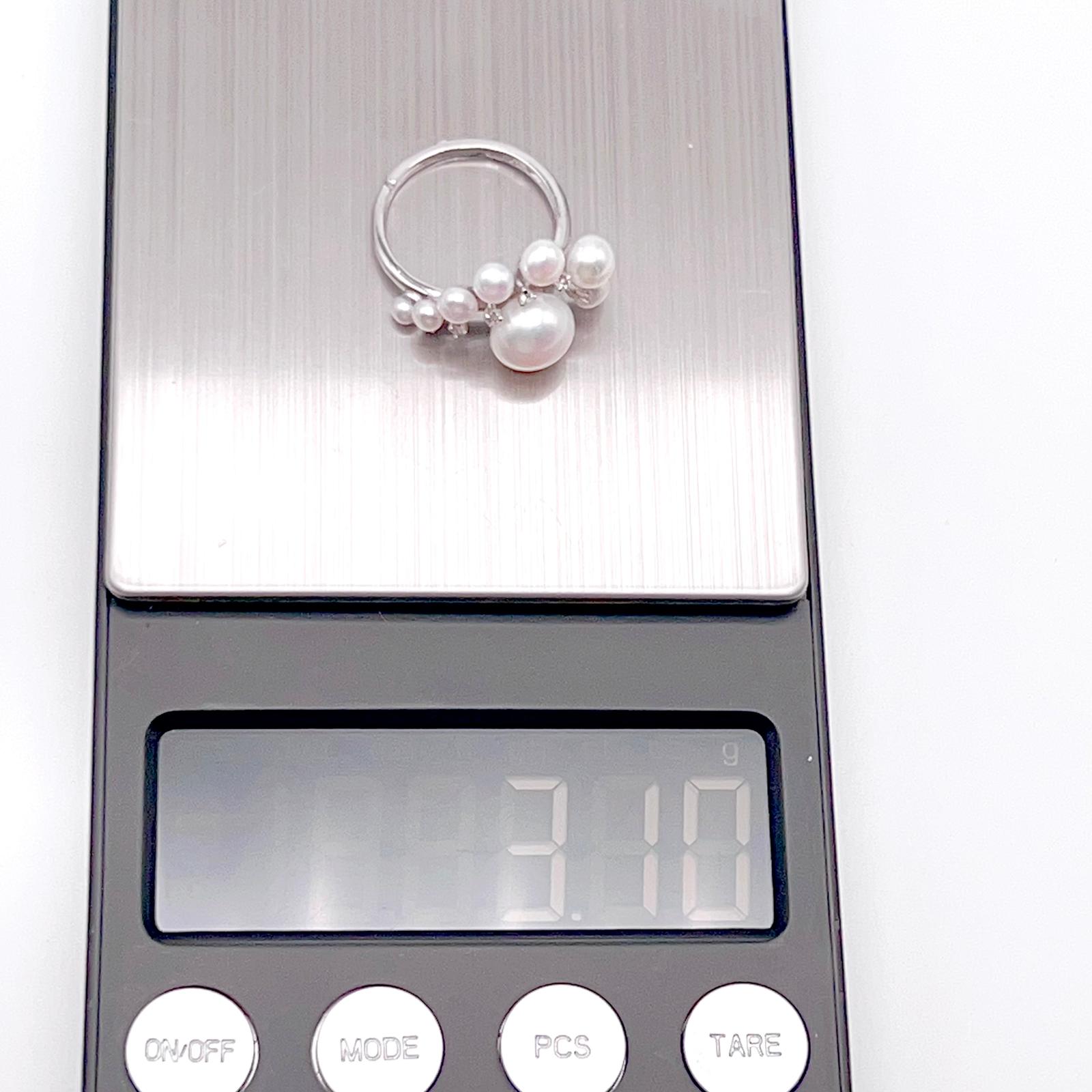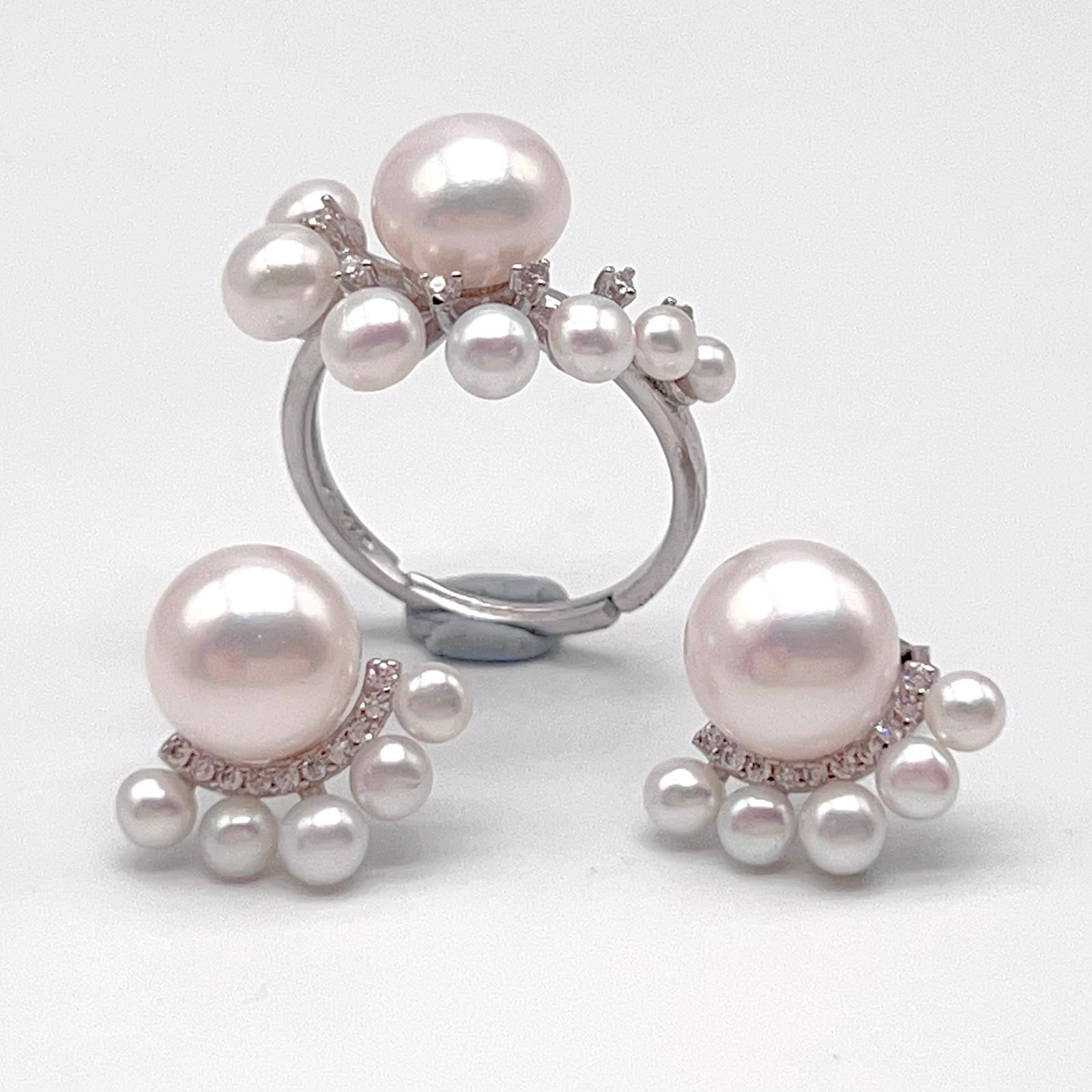 Antique Impression . Multi-pearl Ring & Earring Set in Silver 925 . Button & Lash