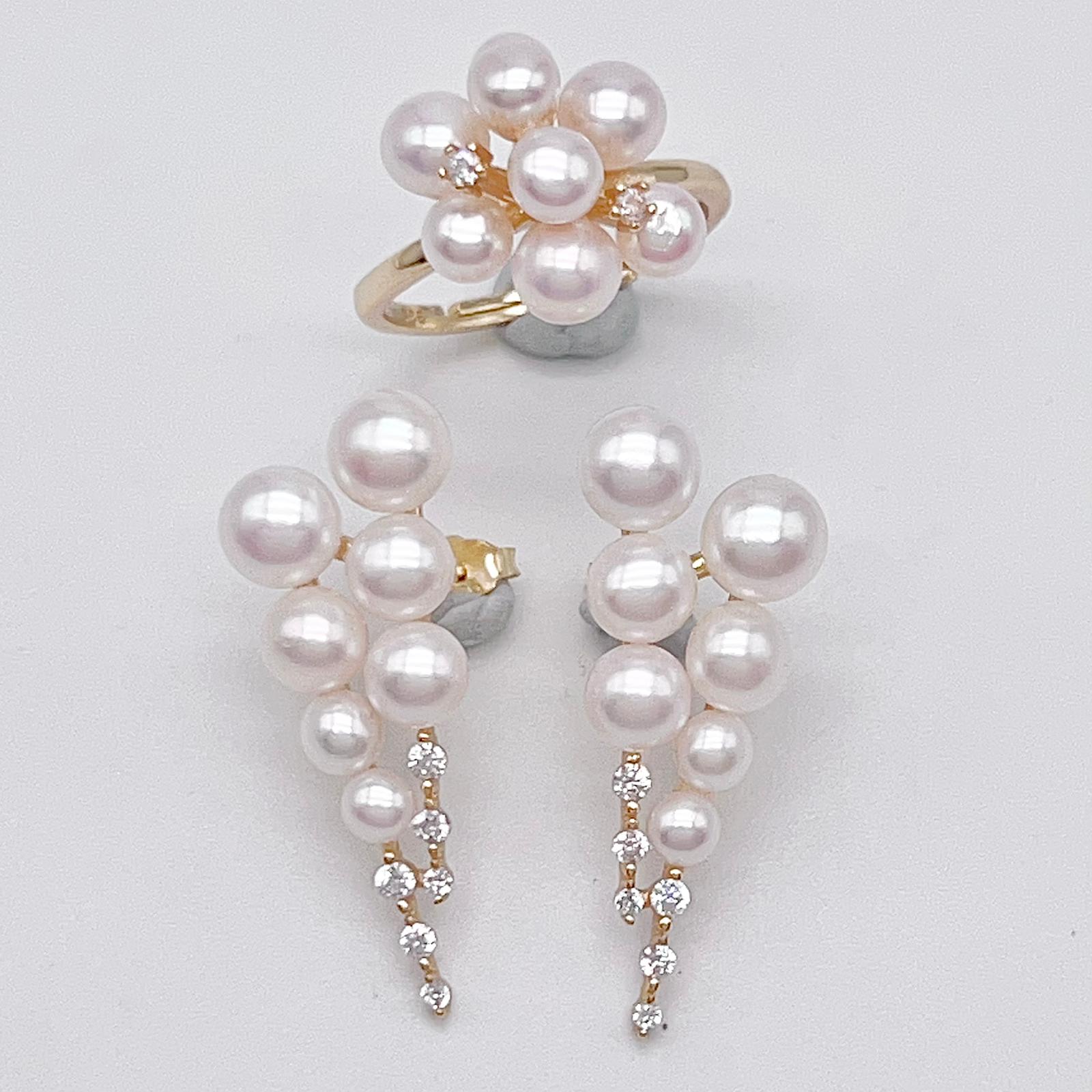 Antique Impression. Multi-pearl Ring & Earrings in Silver 925. Shooting Stars and Edelweiss