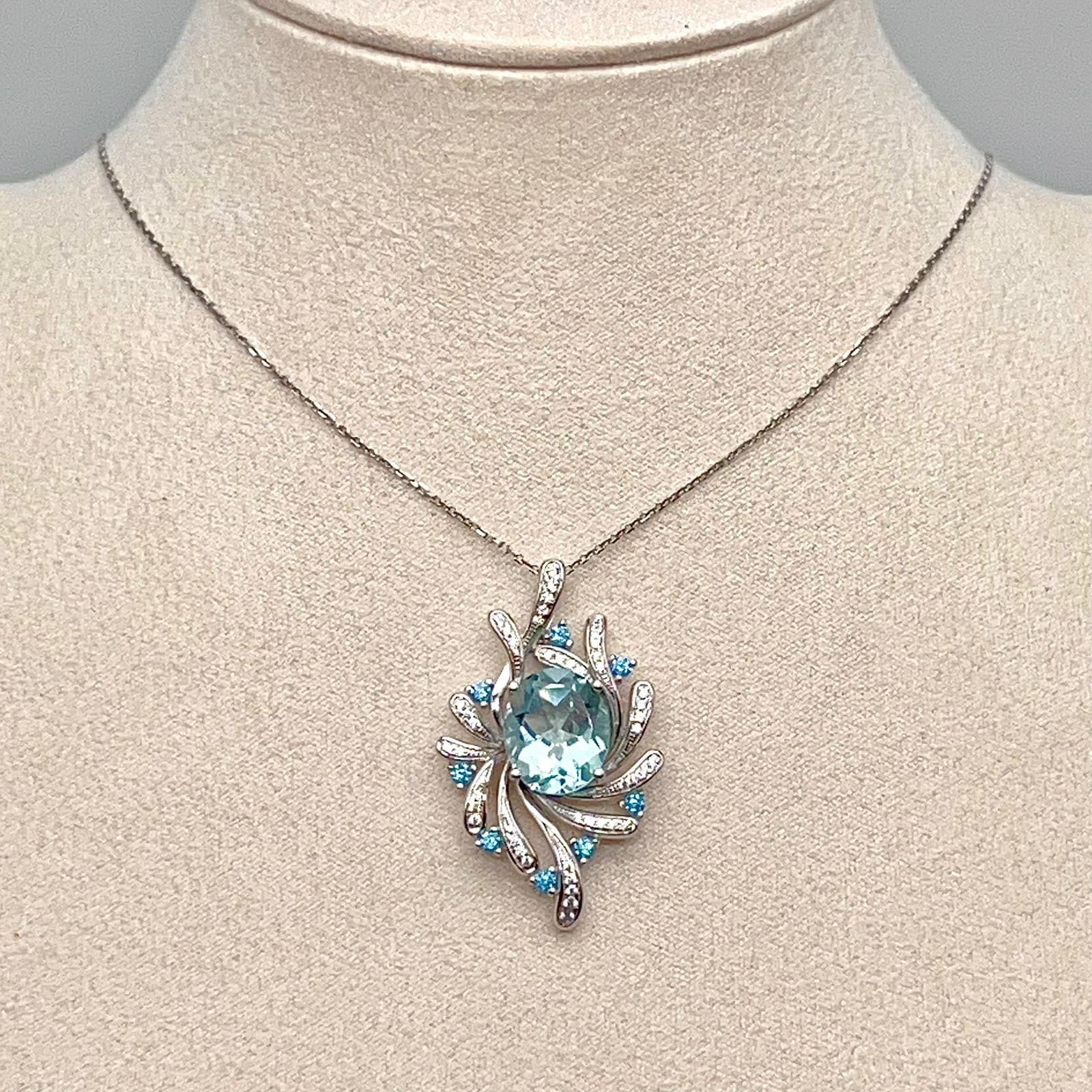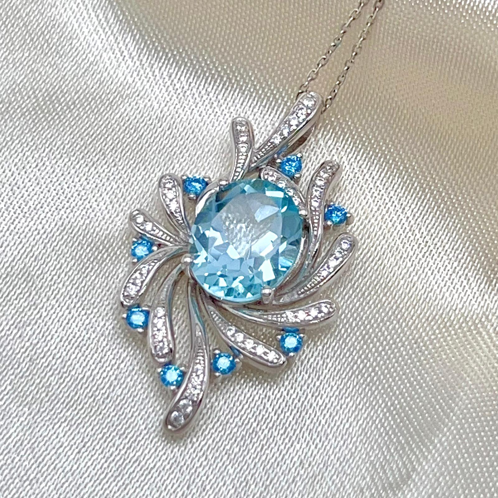 Blue Topaz Swirl Pendant Necklace Silver 925