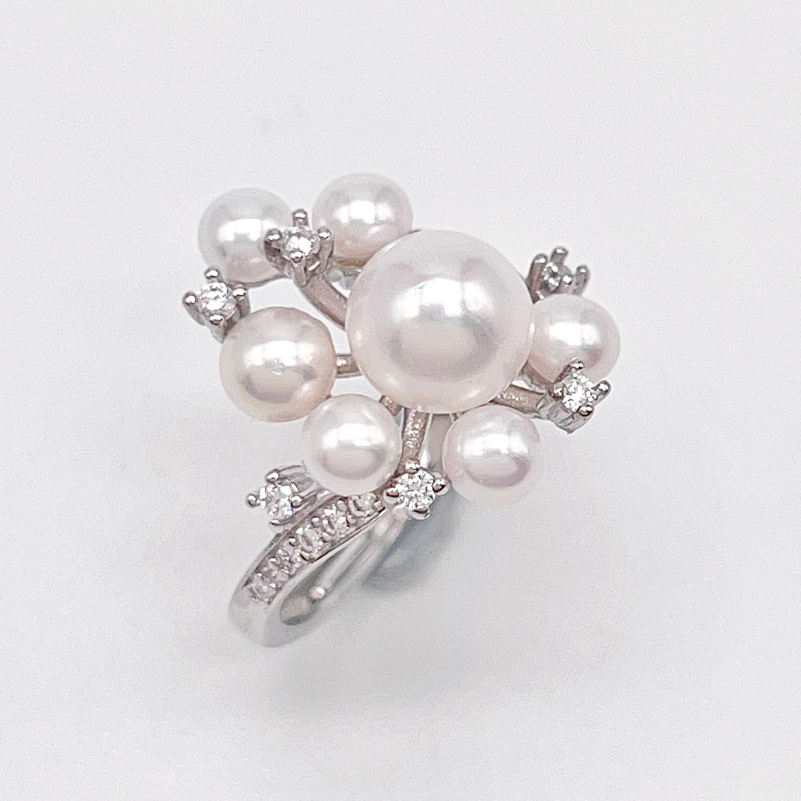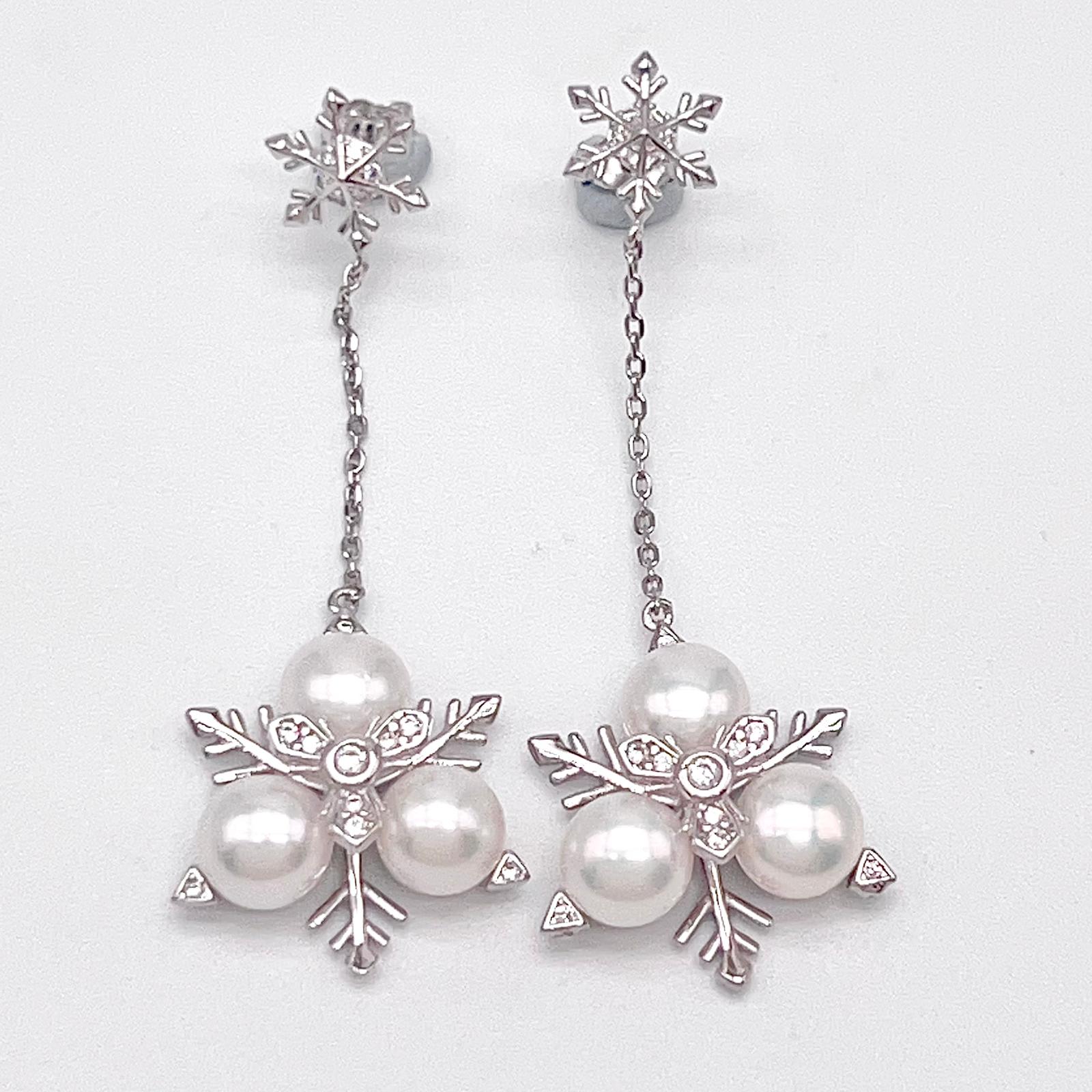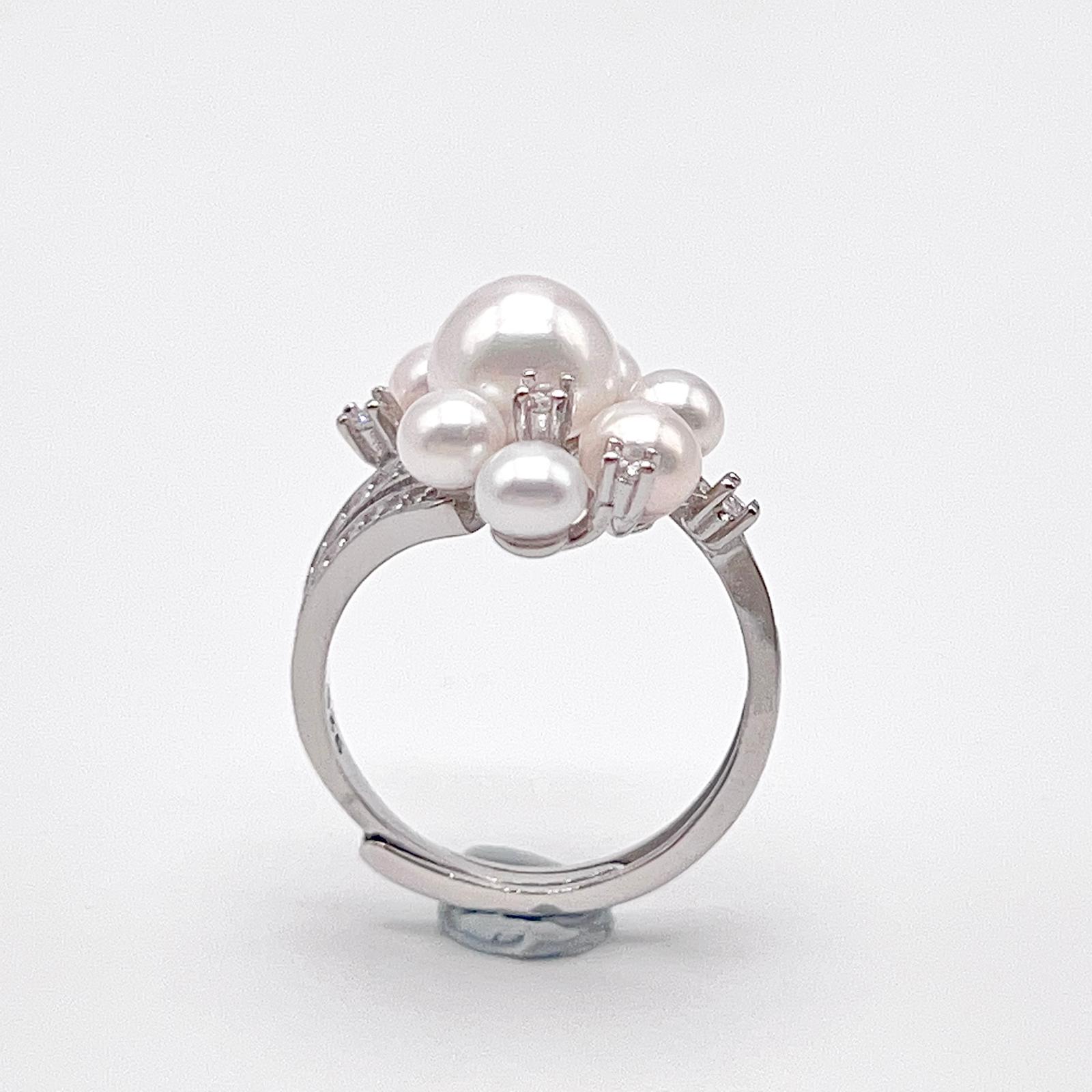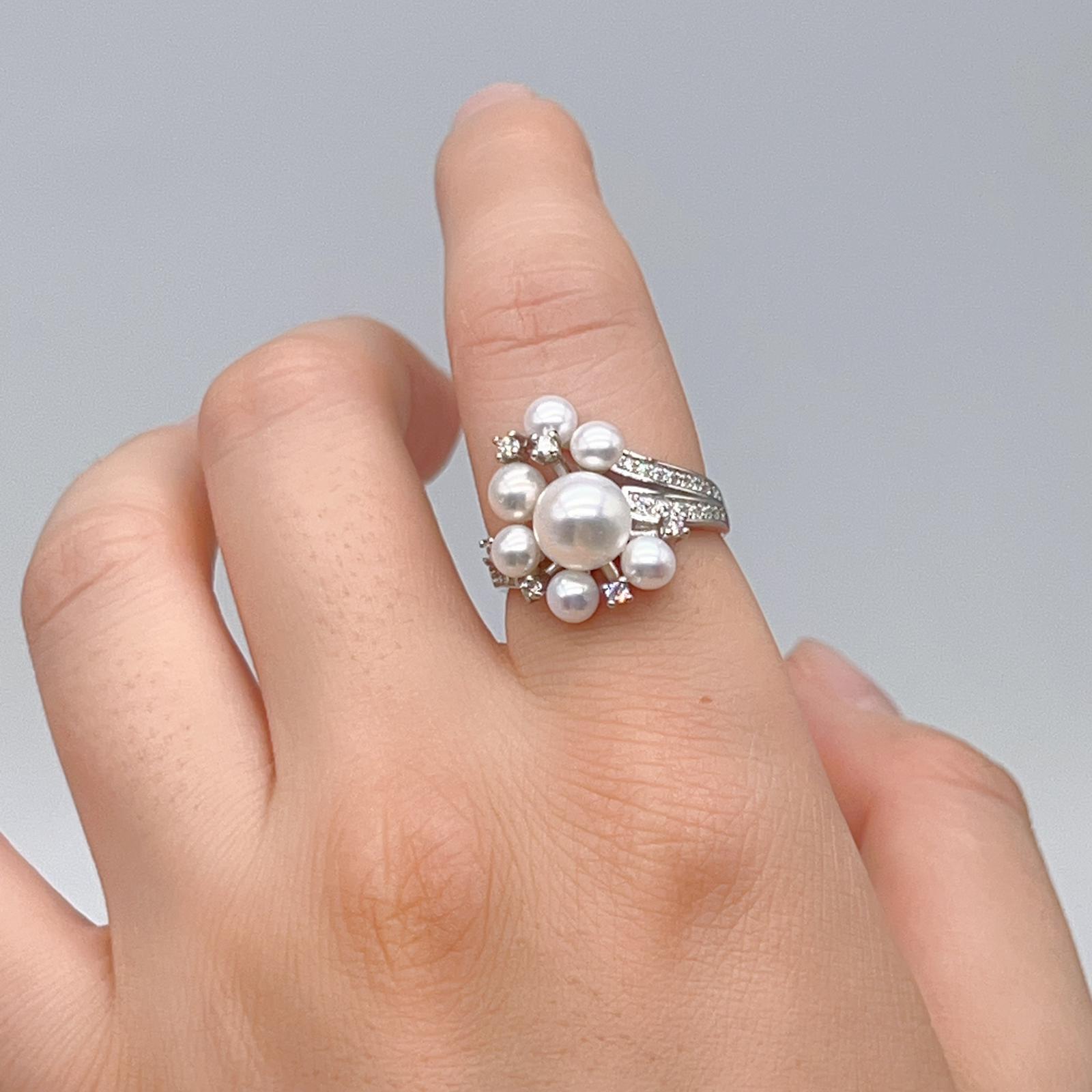 Contemporary Cocktail. Earring and Ring of Pearl Set in Silver 925. Triangular Snowflake