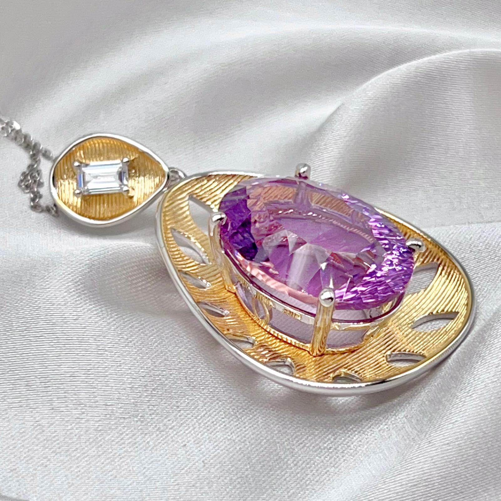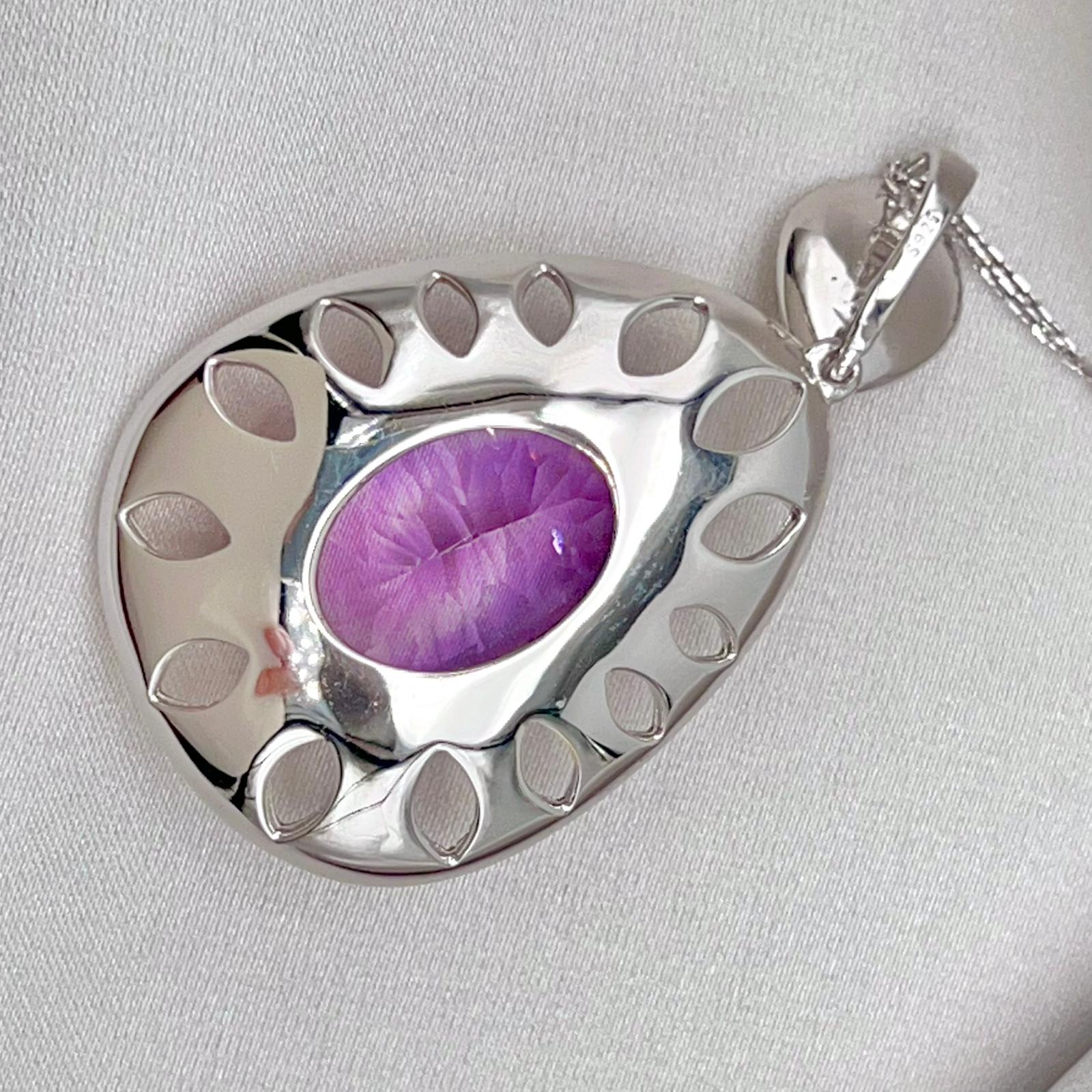 Contemporary Cocktail. Necklace in Amethyst in Oval Shape in Silver 925