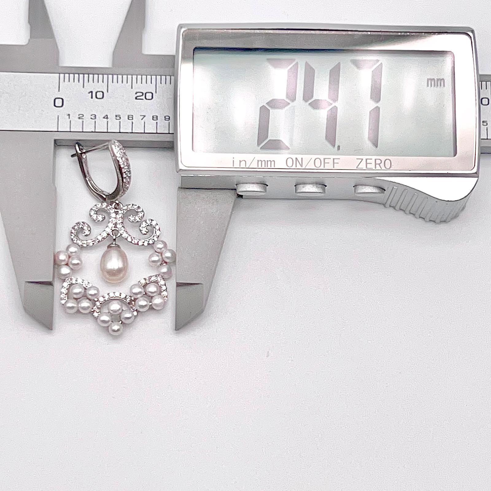 These spectacular Pearl Cluster Dangles 925 showcase intricate scrollwork and a charming frame of small cultured pearls and sparkling stones. A single teardrop pearl hangs gracefully in the center, all set in 925 silver.