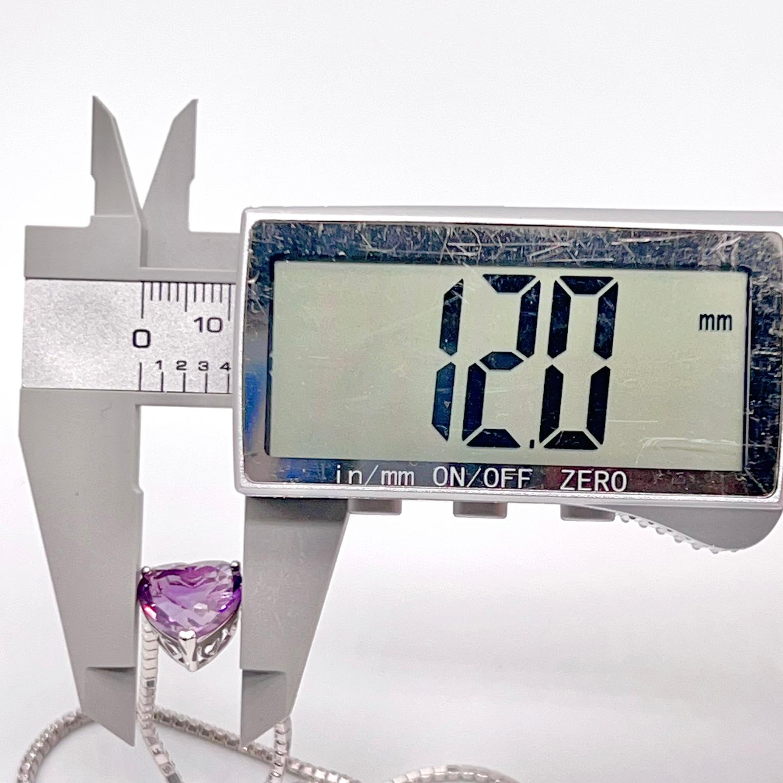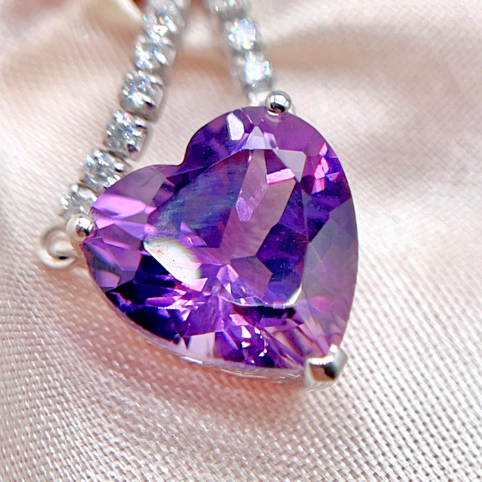 A breathtaking heart-cut amethyst necklace, perfect for gifting or special occasions. This stunning purple gemstone pendant features a deep violet, faceted heart, elegantly suspended on a brilliant, rhodium-plated pave tennis chain.