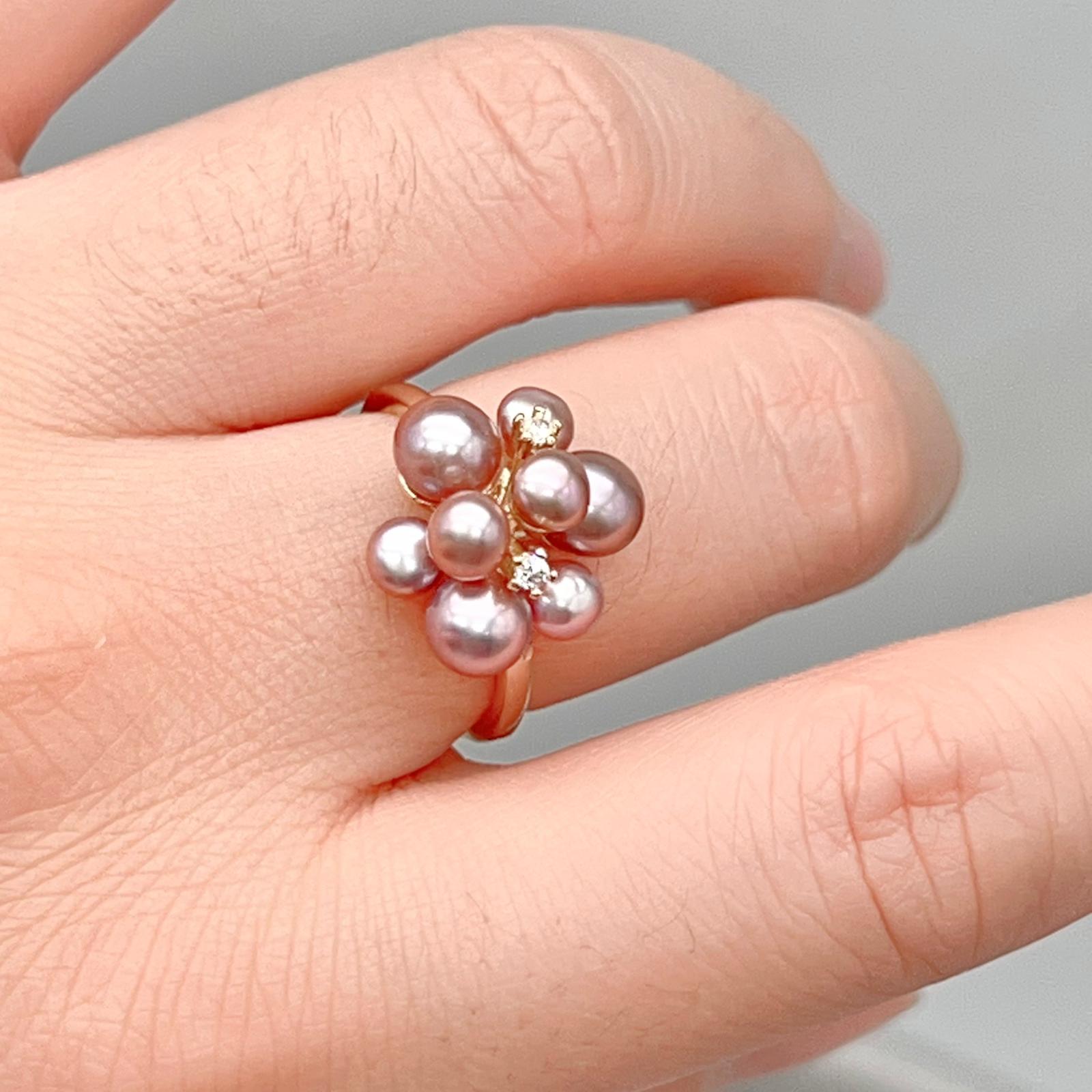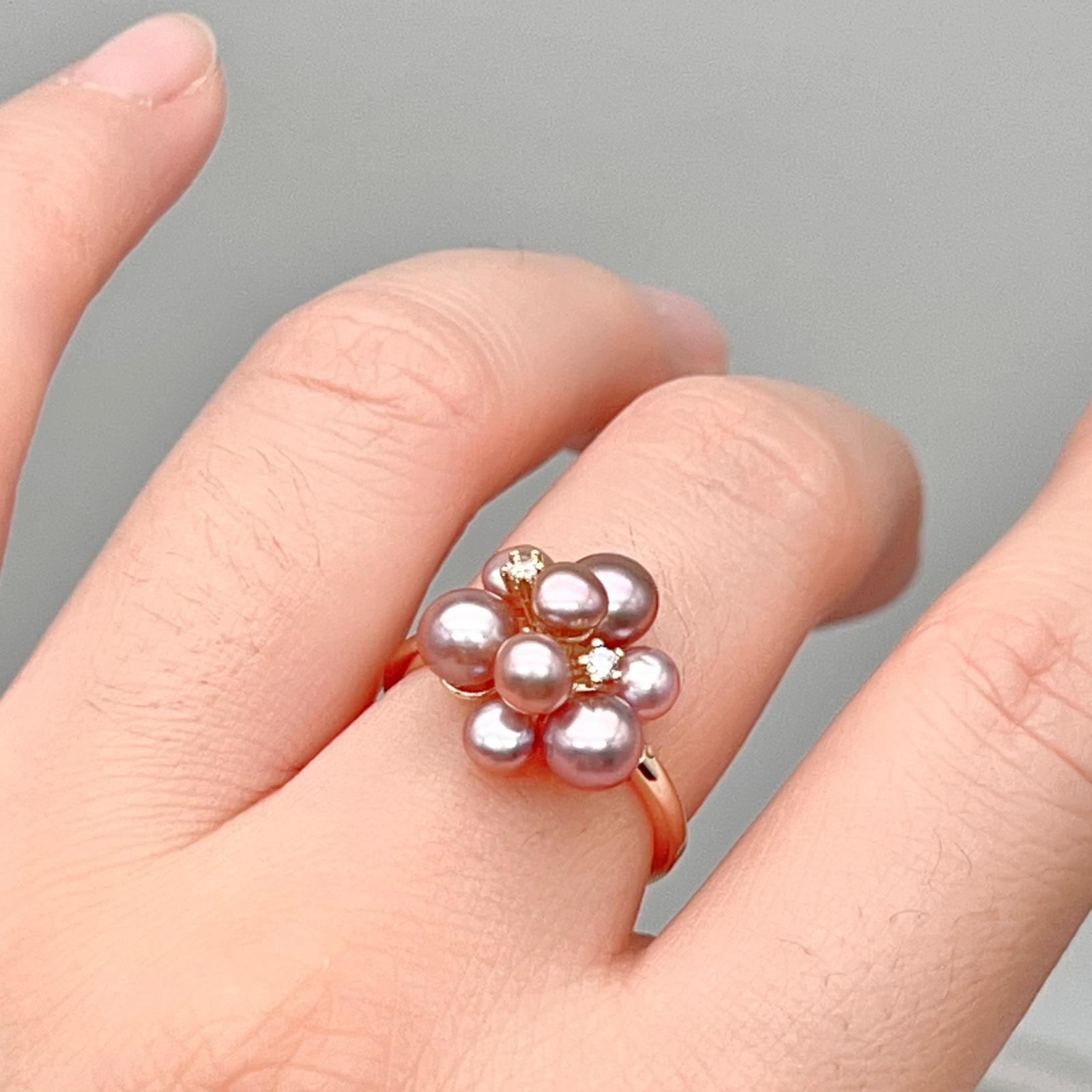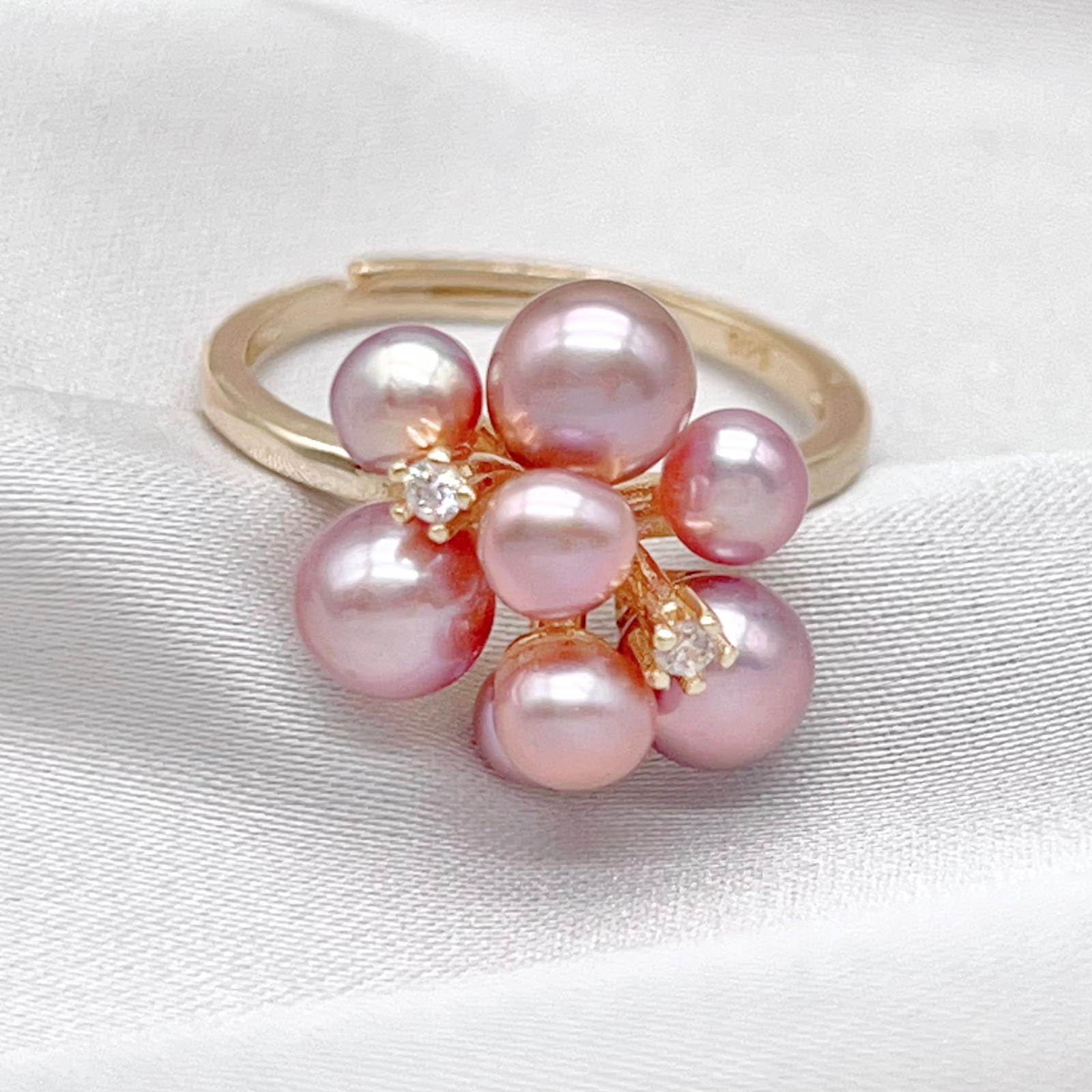 Capturing the charm of a vineyard, this Gold-Plated Silver Set features Pink Freshwater Pearls sculpted into a "grape cluster" motif. The set includes detailed drop earrings with a stem design and a matching ring with sparkling crystal accents.