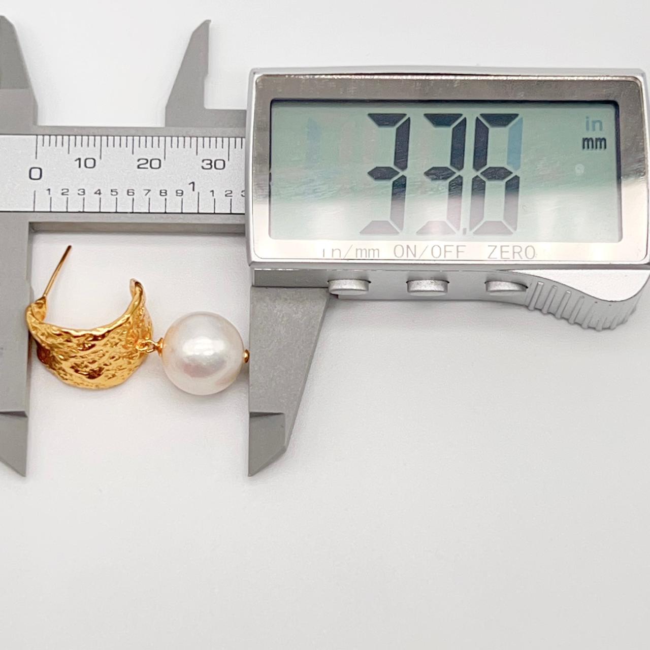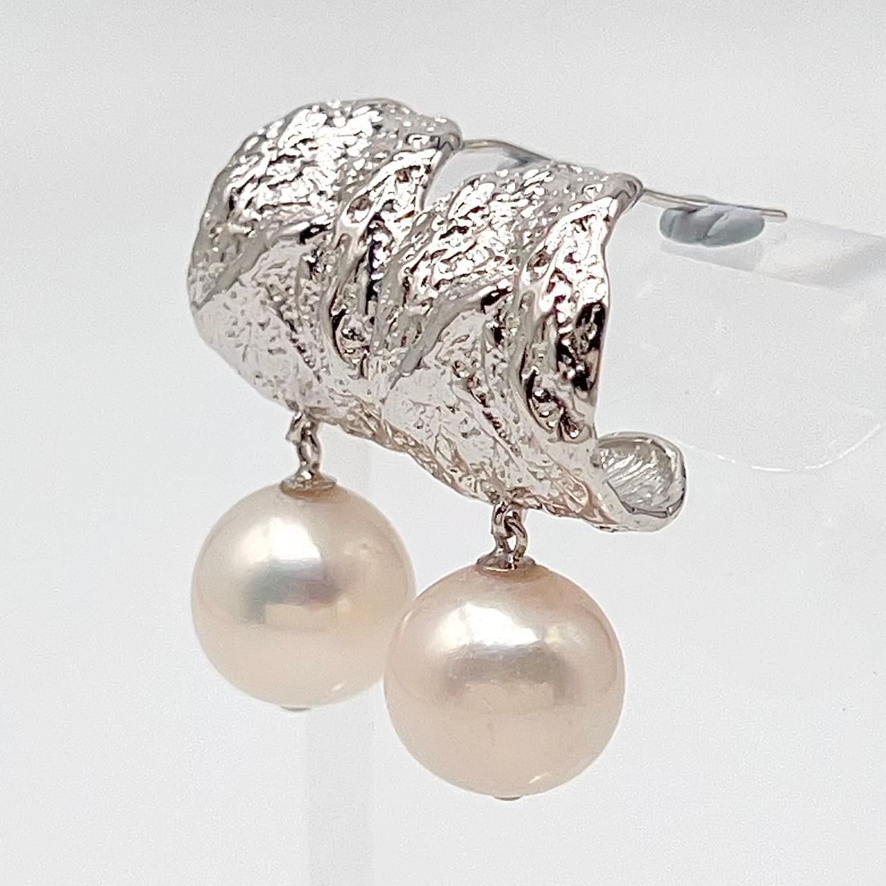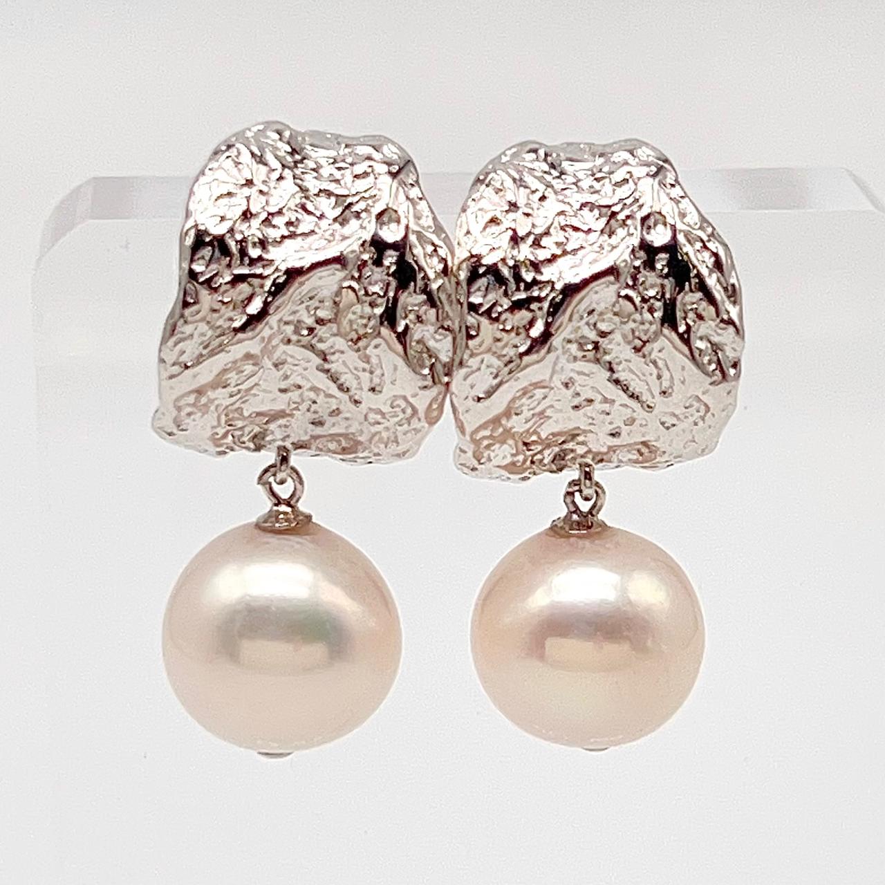 Retro Wind . Edison Pearl Earring in Silver 925. White . Curve Dangle