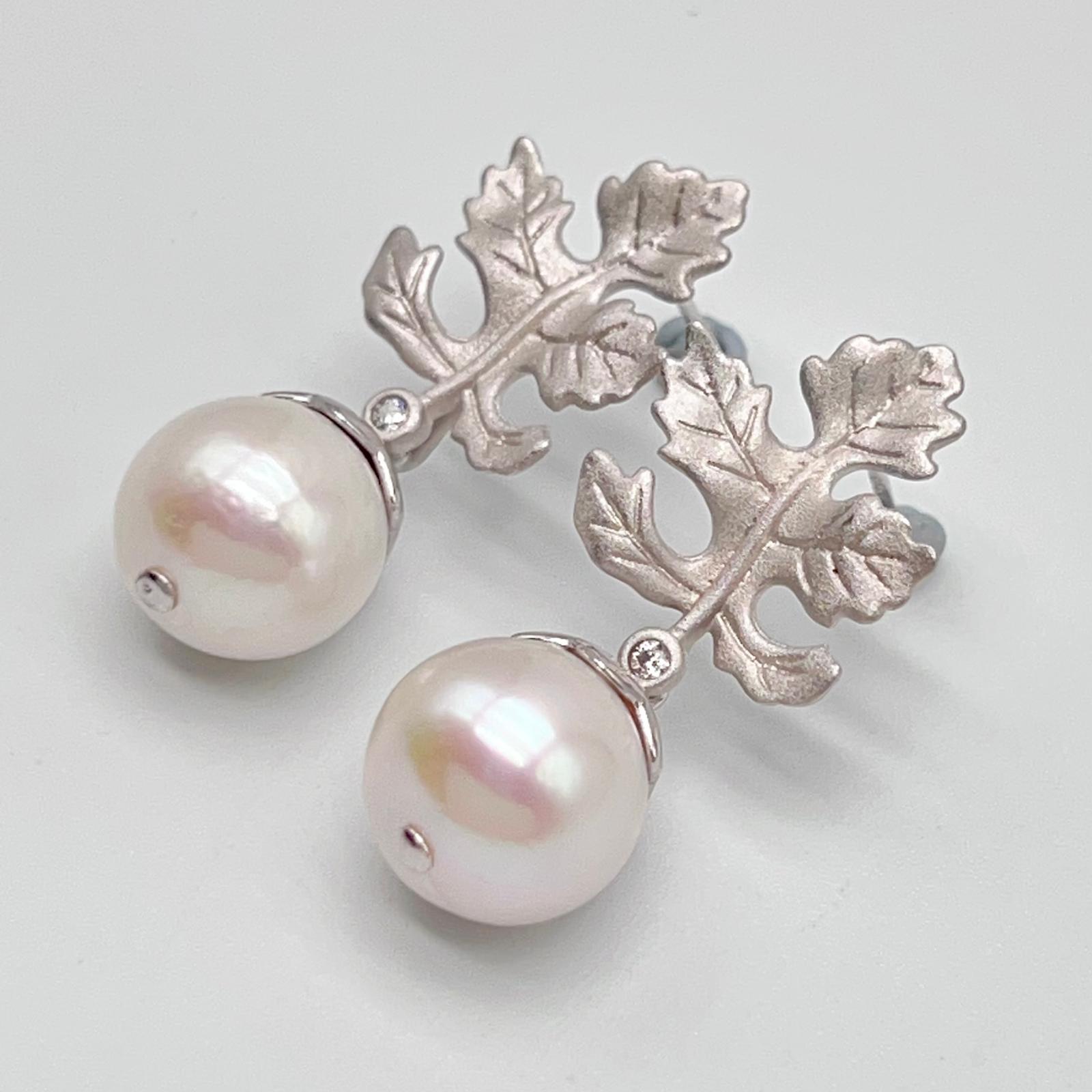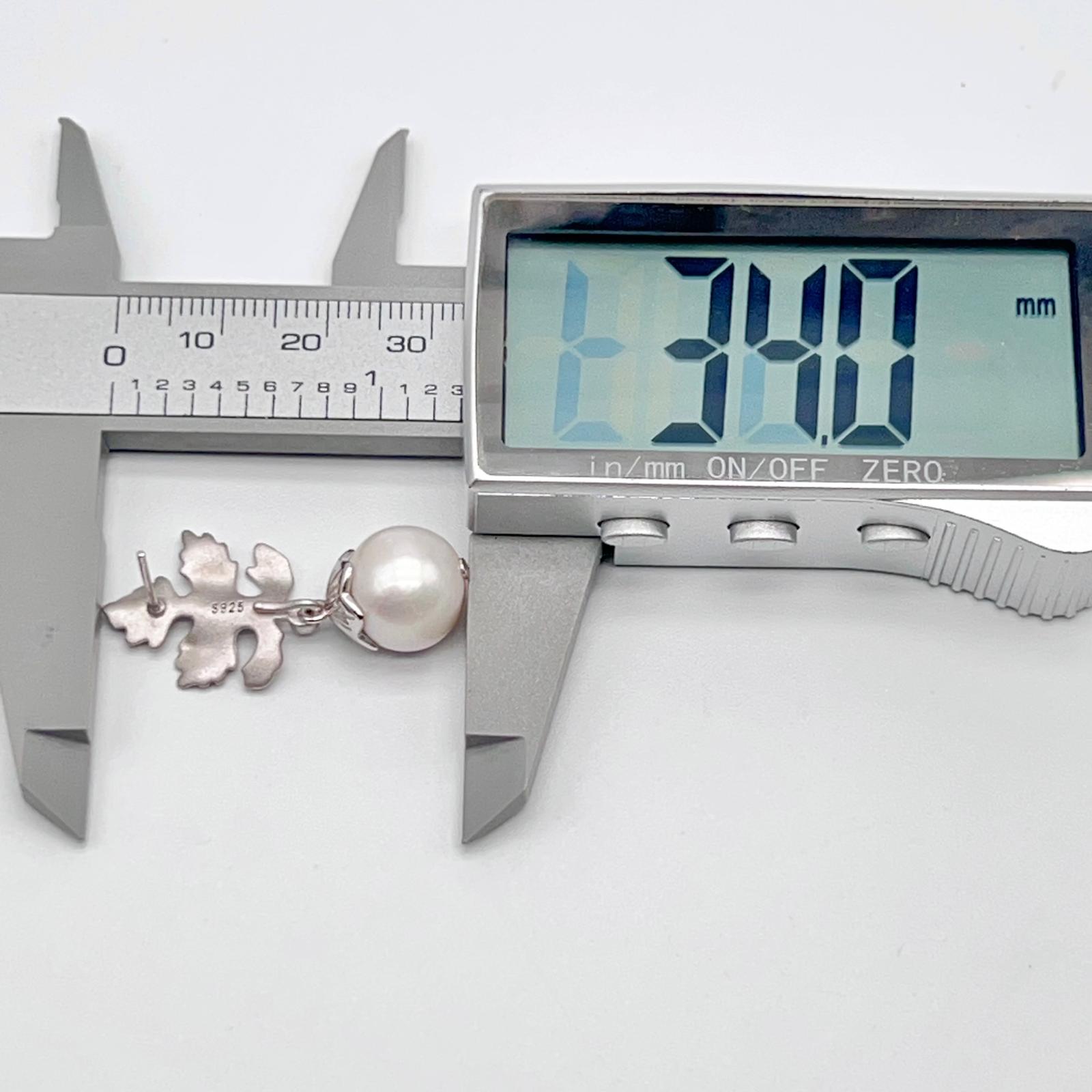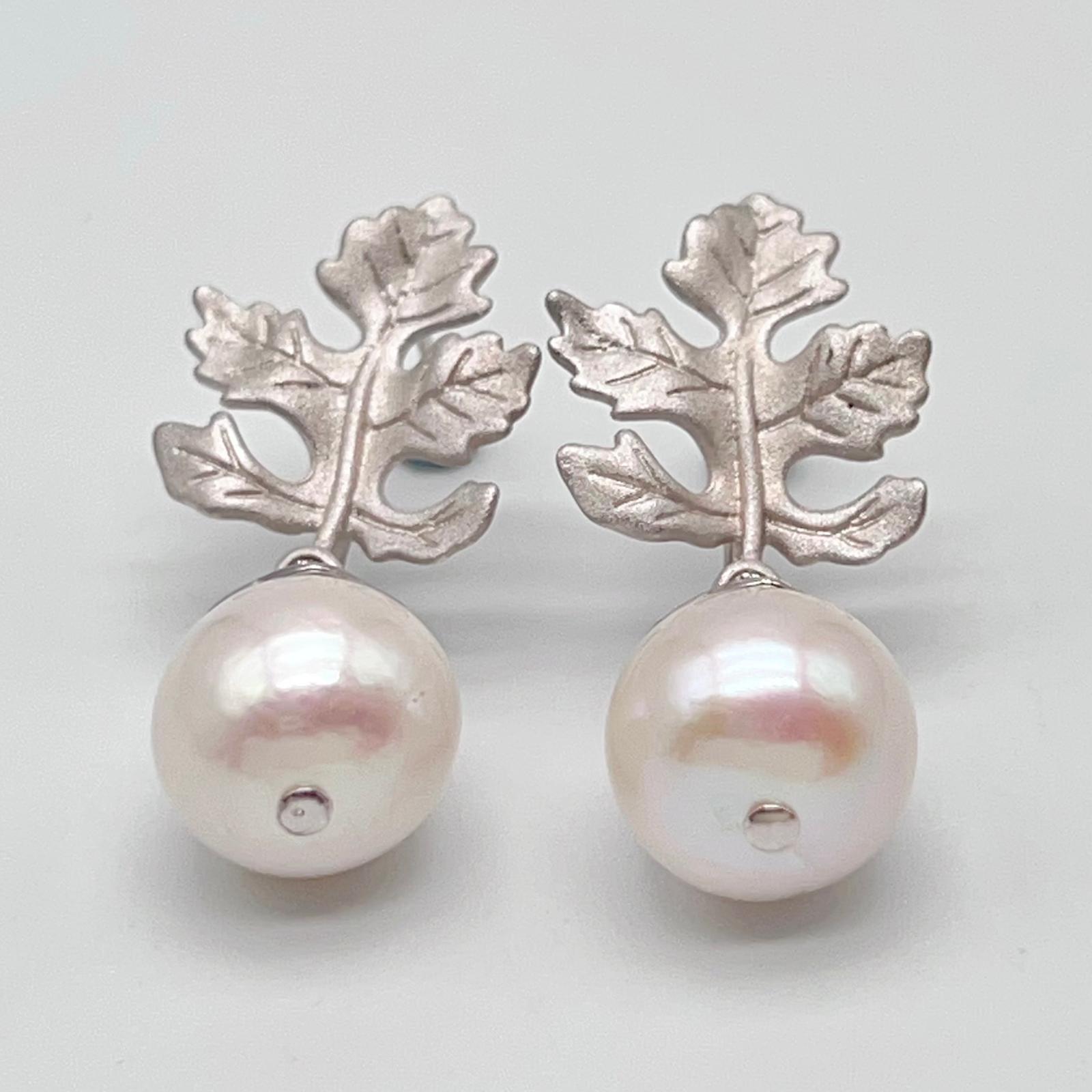 Retro Wind. Edison Pearl Earring in Silver 925. White . Maple Leaf